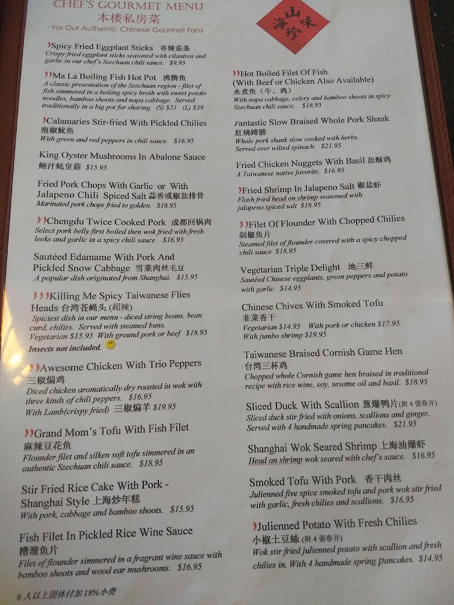 Spicy. Flounder filet and silken soft tofu simmered in an authentic szechuan chili sauce.