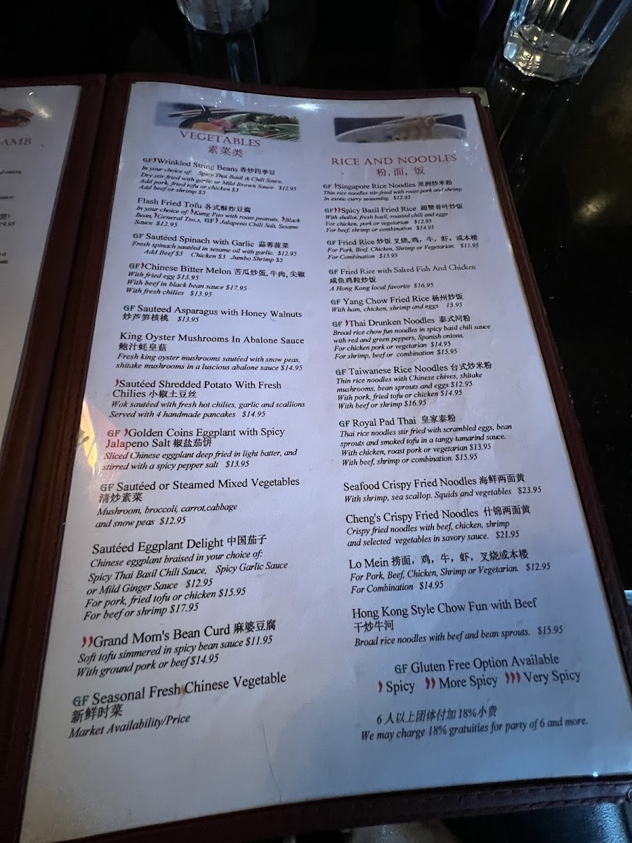 Chinese eggplant braised in your choice of spicy thai basil chili sauce and spicy garlic sauce.