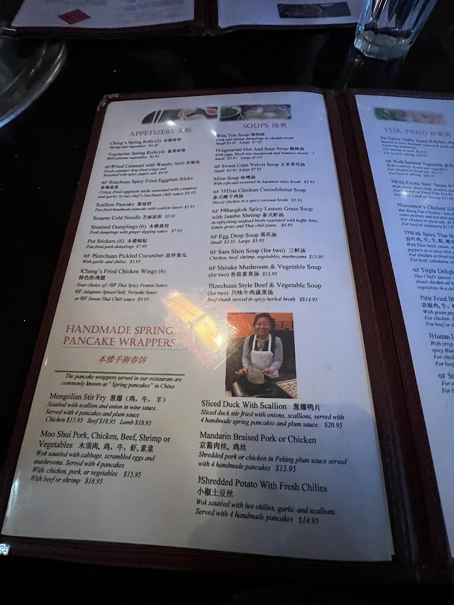 Wok sauteed with fresh chilies, garlic, and scallions. Served with 4 handmade pancakes. Mild.